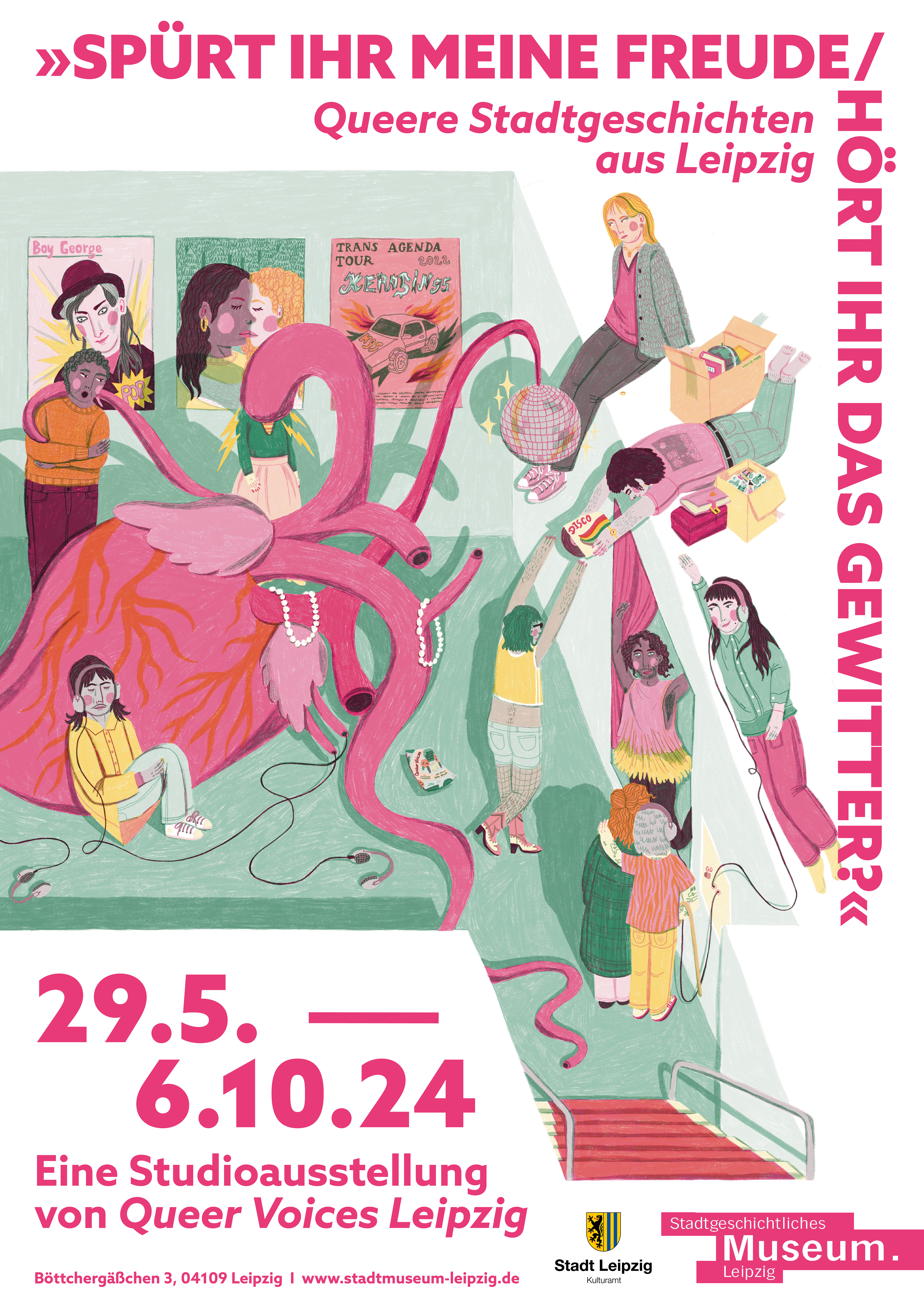 Ab Frühjahr 2024 folgte die Ausstellung "SPÜRT IHR MEINE FREUDE/ HÖRT IHR DAS GEWITTER?" im Stadtgeschichtlichen Museum Leipzig, für welche ich wieder Poster und co. gestaltet habe, aber auch das Ausstellungsdesign übernommen habe.